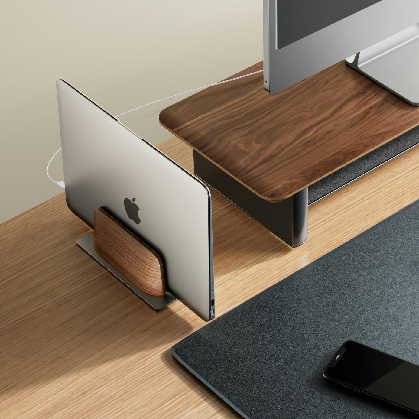 Dankzij het minimalistische design neemt deze laptophouder weinig ruimte in beslag op je bureau.