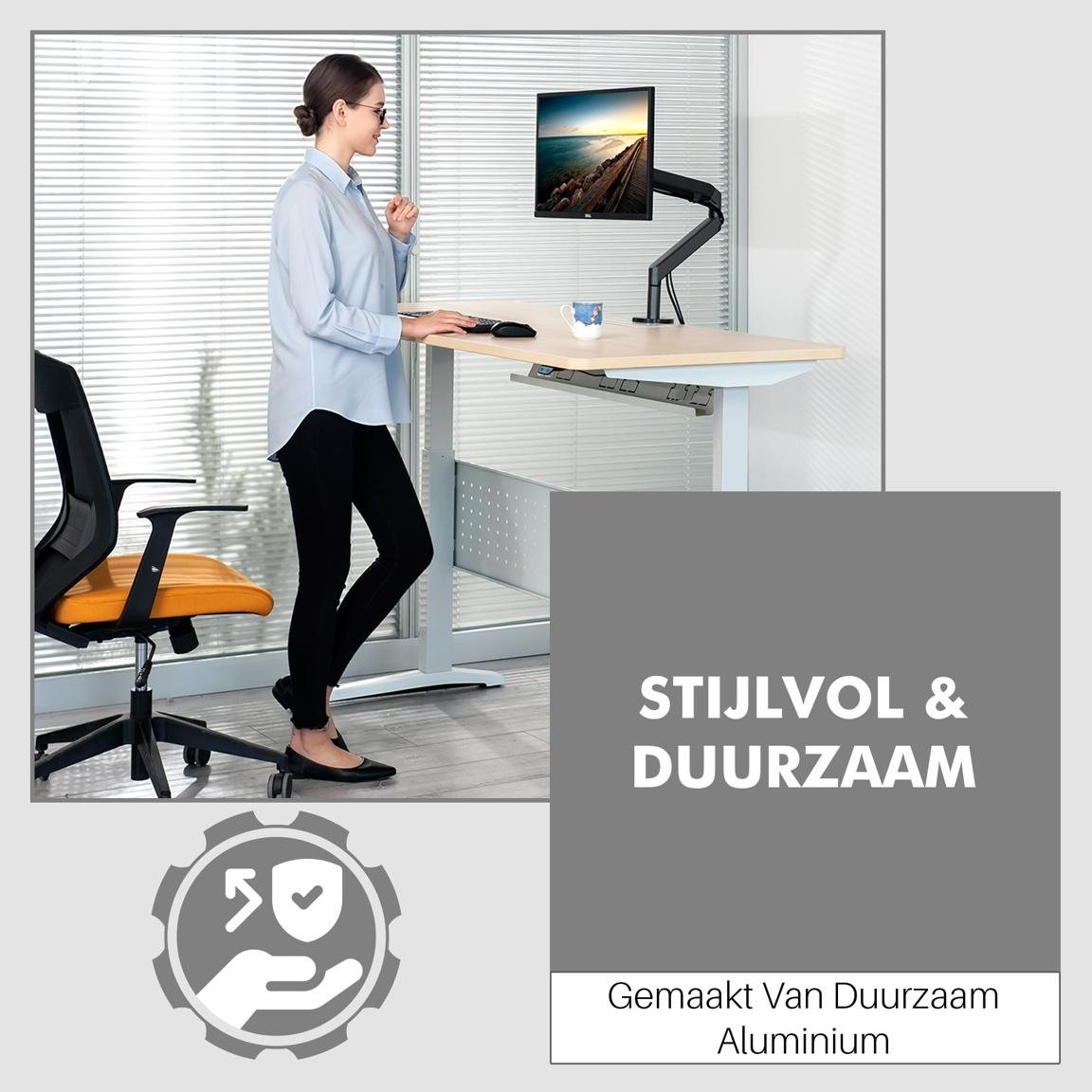 De Levantu monitor arm gasveer zorgt dat u zonder rug- nek- of schouderpijn thuis kan werken. Door het ergonomische ontwerp staan uw scherm precies op ooghoogte. De arm kan volledig bijgesteld worden in hoogte en is kantelbaar zodat u vanuit de juiste hoek op uw schermen kijkt. De Monitorbeugel werkt op een volledig ingebouwde gasveer, waardoor het zeer eenvoudig is om de positie van jouw schermen te veranderen. Geschikt voor 1 monitor van 13 tot 35 inch. De monitor arm is makkelijk verstelbaar en universeel, waardoor je deze kunt gebruiken voor alle merken.