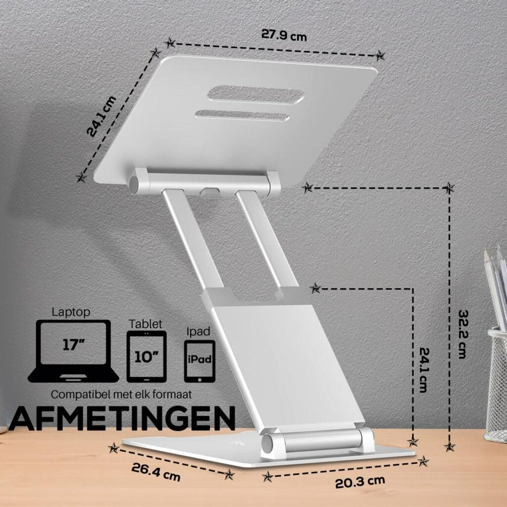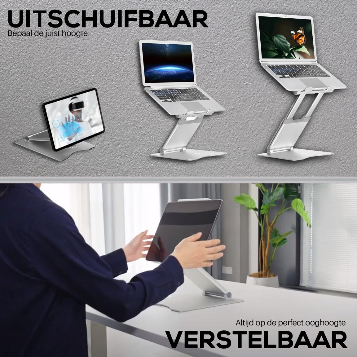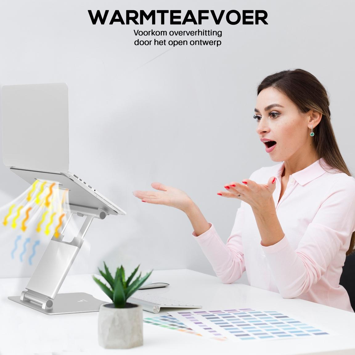 Dankzij de openingen aan de bovenkant van de laptop standaard blijft jouw laptop koel waardoor deze niet oververhit kan raken. Bij het ontwerp is met opzet gekozen voor aluminium en de opening. Je laptop zal op een lange werkdag niet oververhitten. Door de koelende werking van de laptopstandaard is deze dus ook geschikt voor oudere laptops die daar vaak problemen mee hebben.